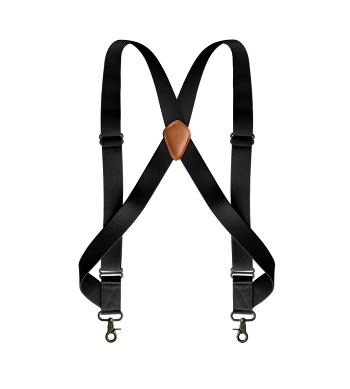 Hölster hängslen. Justerbara och extra breda för komfort och styrka. Med 2st karbinhakar som fästes i bälteshällorna på byxornas sidor.